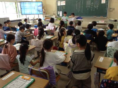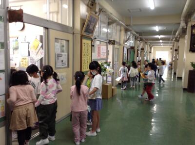 5月9日、1・2年生で学校たんけんを行いました。1年生は学校の中には、いろいろな教室や備品等があるのを発見し、ワクワクしながらたんけんをしていました。2年生は、1年生を案内するために事前の準備を進め、たんけんでは、見事なお兄さんお姉さんぶりを発揮していました。