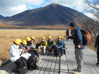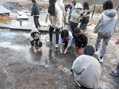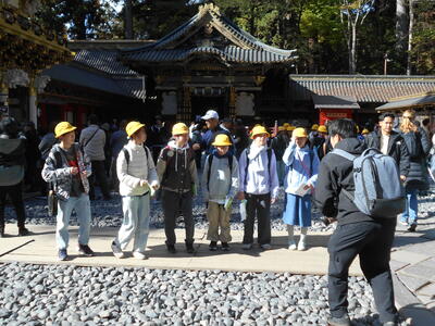 11月6~7日、6年生は日光へ修学旅行に出かけました。行きのいろは坂では、霧に覆われて辺り一面真っ白でした。戦場ヶ原ハイキングでは霧がはれ、男体山がきれいに見えました。湯滝、華厳の滝を見学しホテルへ向かいました。おいしい食事の後、日光彫の体験をしました。2日目、目を覚ますと雪が降っていました。朝の散歩で源泉のあるところに出かけました。東照宮や街並み散策ではグループで活動し、日光を満喫しました。