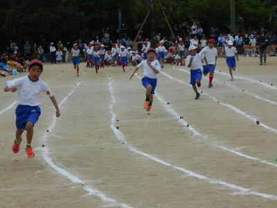 5月24日、運動会を開催しました。曇り空のため天候が少し気になりましたが、熱中症の心配なく実施できたのはよかったです。子どもたちは、これまで練習してきた演技の成果を十分に発揮し、徒競走や競技では力いっぱい頑張っていました。