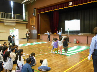 5月2日、1年生を迎える会を開催しました。その後、ペア学年で歩き遠足に行く予定でしたが、あいにくの天候のため、ペア学年で交流し楽しく活動しました。どの子も笑顔があふれていました。