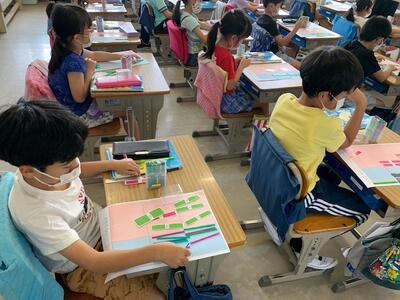 授業では、十の位は十の束で、一の位はばらの数え棒で、具体的に筆算のやり方を考えました。