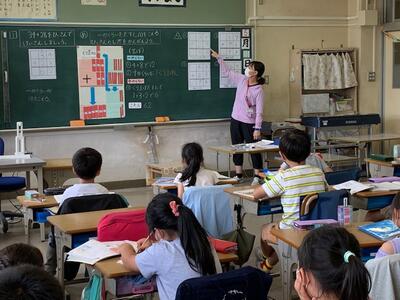 数え棒の束とばらの様子を示し、筆算の方法を丁寧に確認しました。