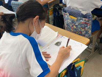 「そういうものにわたしはなりたい」を読み、雨ニモ負ケズの詩を通し、宮沢賢治が人のために生きた生涯や賢治の心情を考えていきました。