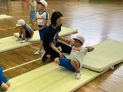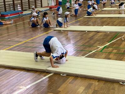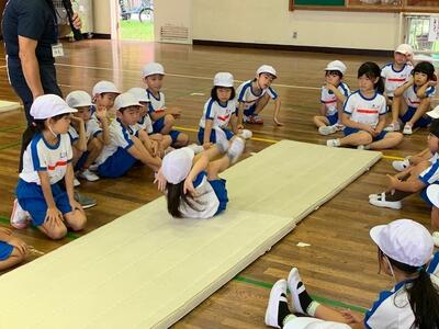 上手に後ろ回りをしている子にお手本をみせてもらいました。