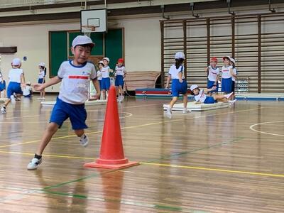 最後に、リレー形式で横回転の速さを競いました。楽しみながら、たくさん汗をかきました。