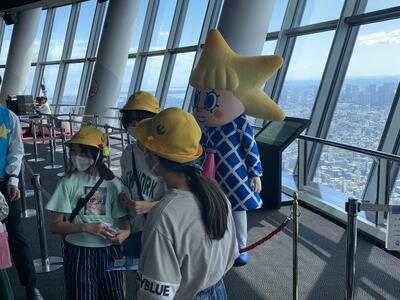 こちらはエレベーターで345mの展望デッキへ。ソラカラちゃんが歓迎してくれました。