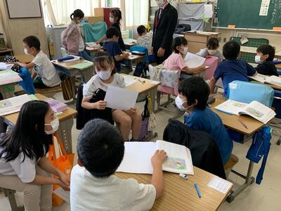 明日は学習参観日です。授業の様子を参観していただくとともに、教室や廊下に展示してある子どもたちの作品をぜひご覧ください。