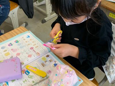 教科書のつくり方を見ながら折りますが、なかなか思うようにいきません。