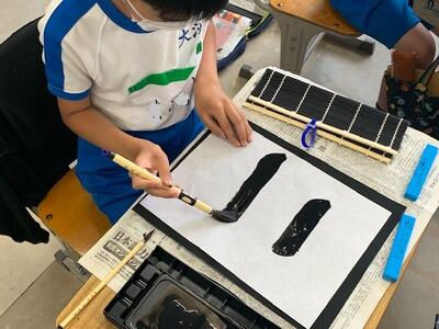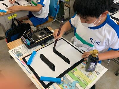 3年生になり、書写の時間に毛筆の学習が加わりました。