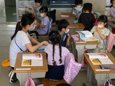 さし絵を見ていた子どもから、「やさしくなったおおかみさんのまわりには、ちょうちょもトンボもやってきたよ。」「やさしいかんじがわかったからだと思う。」
