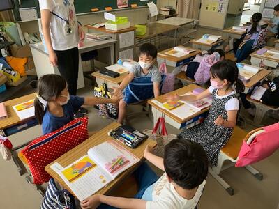 1年生は、6年生のお兄さんお姉さんとペアを組み、それぞれの種目を回ります。