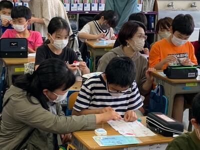 子どもたちも、いくつも玉留めをしていくうちに、だんだんコツがわかってきたようです。
