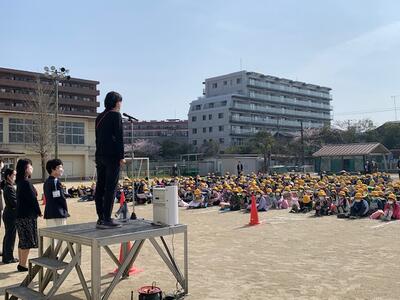 あたたかな日差しの中、大洲小学校の令和4年度がスタートしました。