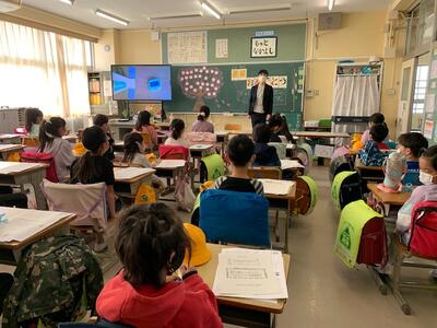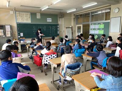 「大洲小学校は校庭が広いので、先生や友だちとたくさん遊ぶことができます。是非、一緒に遊びましょう。そして、大洲小学校の子どもたちは、誰にでも優しく思いやりがあります。何か困ったことがあったら、私たちに聞いてくださいね」と、児童の代表が歓迎のあいさつをしてくれました。