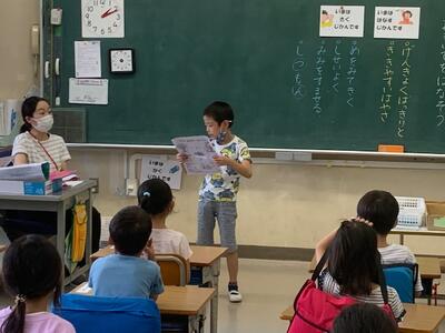 夏休みの楽しかったことや嬉しかったことを発表します。