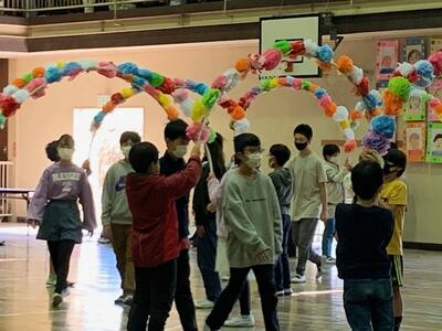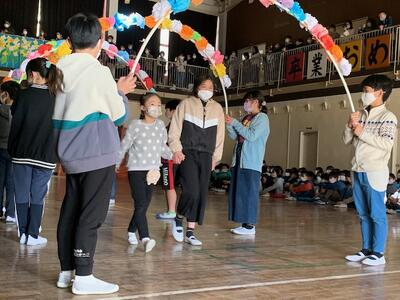 アーチの中を6年生が入場し、「6年生を送る会」がスタート。