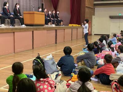 「大洲小学校の児童は、とても元気があります。そして、校庭が広いので、先生や友だちとたくさん遊ぶことができます。是非、一緒に遊びましょう」と、児童の代表が歓迎のあいさつをしてくれました。