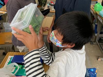 だいぶ大きくなりました。何回か脱皮したようです。子どもたちがうれしそうに教えてくれました。