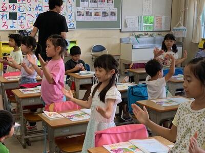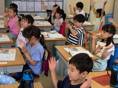 1年生の教室から明るく元気な声が聞こえてきます。