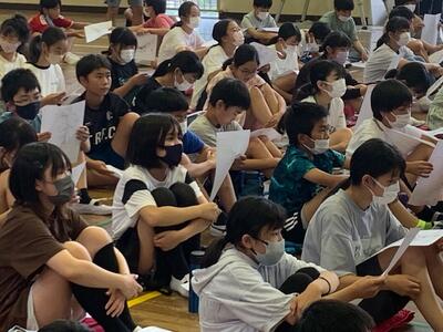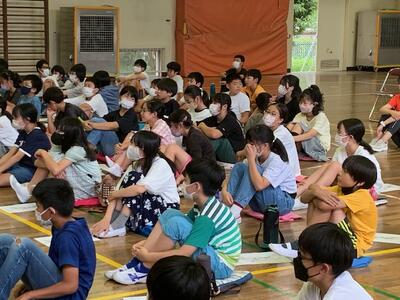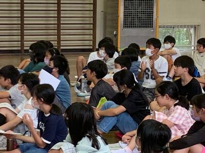当時、中学3年生だった講師の井上さんの長崎での被爆の体験談に、皆、真剣に耳を傾けます。