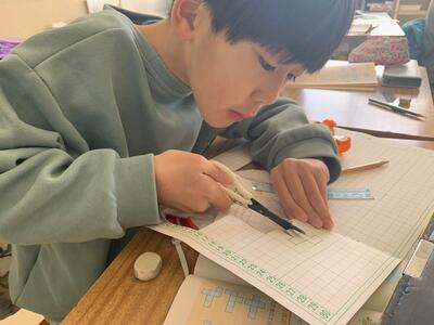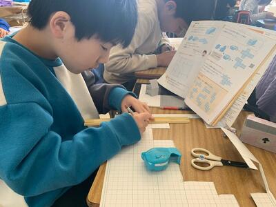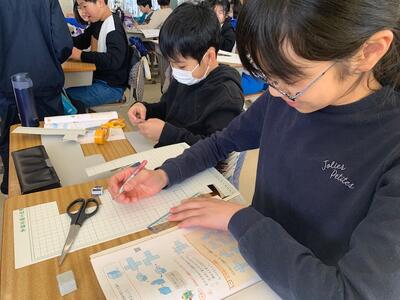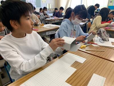 「ここがこうだから…」と頭を悩ませながら展開図を書いていました。