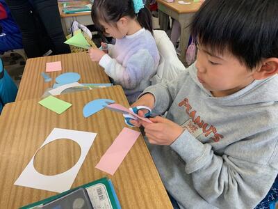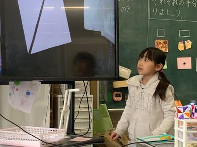 今日は、「長方形の半分の大きさをつくりましょう。」という学習課題に取り組みました。