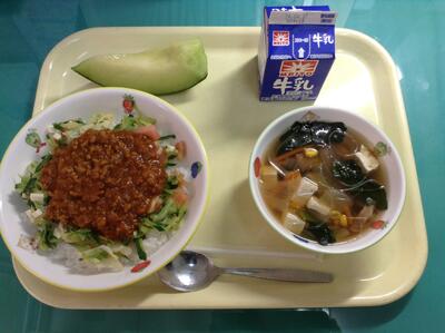 メロン:熊本県 春雨:タイ 米、ほうれん草:千葉県 牛乳:千葉県他