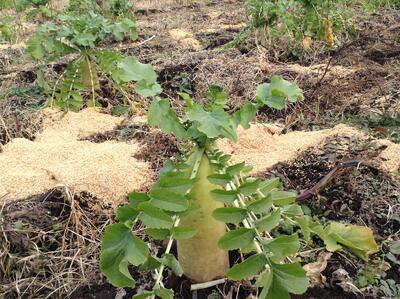 ↑ 市原市瀬又にあるワンドロップファームさん(有機野菜栽培、養蜂)の有機大根(有機JAS認証)の収穫の