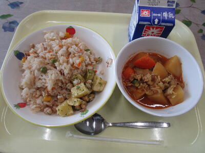 今日の千葉県産の食材は、米、牛乳、にんじん、さつまいもでした。