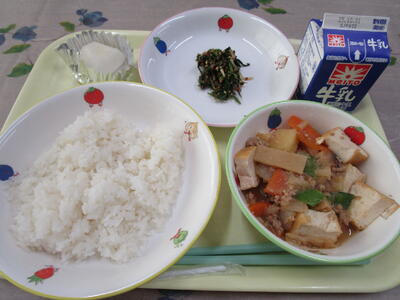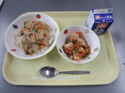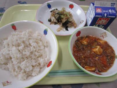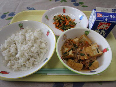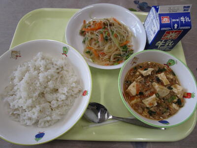 牛乳 ご飯 麻婆豆腐 バンサンスー
