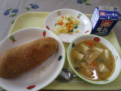 牛乳 きなこ揚げパン 洋風煮込み マセドアンサラダ