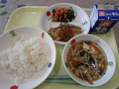 牛乳 ご飯 いわしのかば焼き さつま汁 ごま和え