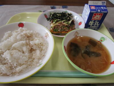 牛乳 ご飯 お好みオムレツ焼き ほうれん草の磯和え みそ汁