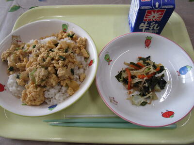 牛乳 ご飯 カレー豆腐 和風サラダ