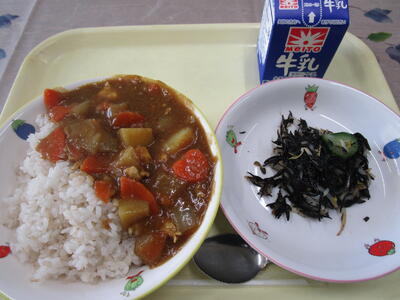 牛乳 チキンカレー ひじきのマリネ