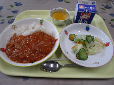 牛乳 ハヤシライス フレンチサラダ かぼちゃプリン