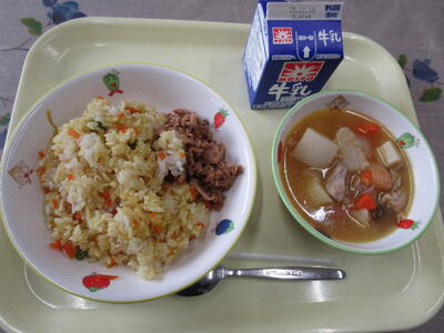 今日の千葉県産の食材は、米、牛乳、にんじんでした。