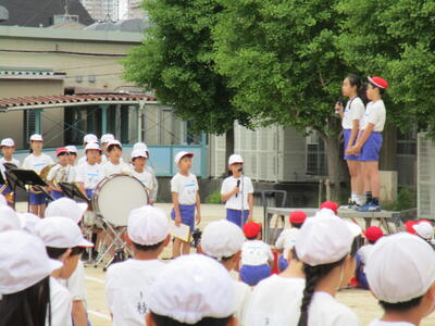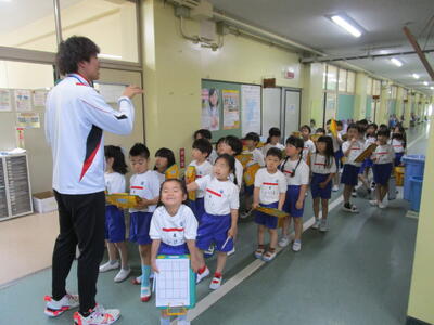 長縄記録会最終日、今日は1年生と6年生が行いました。6年生が声をかけ、背中をそっと押してくれました。上手に入れる子もたくさんいました。最後は6年生から頑張ったでしょうのメダルをもらってそれぞれの頑張りをたたえました。