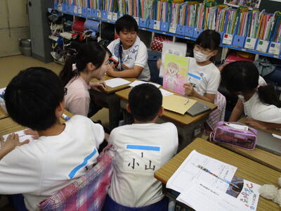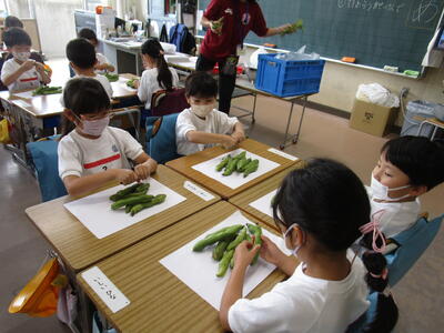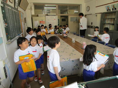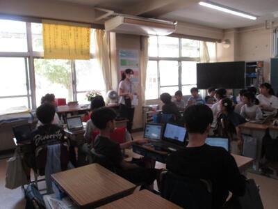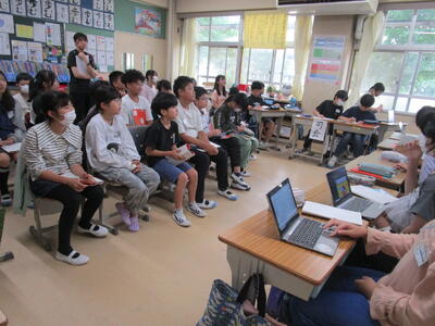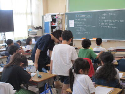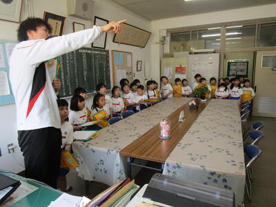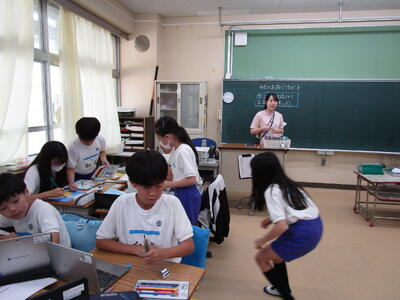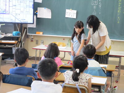 第八中学校の2年生3人が職場体験に来ています。今日は4~6年生の学級に入りました。卒業生はの二人は懐かしいと思うところもあったでしょう。入ったクラスの子どもたちと関わり、声をかけていました。明日は1~3年生に入ります。よろしくお願いいたします。