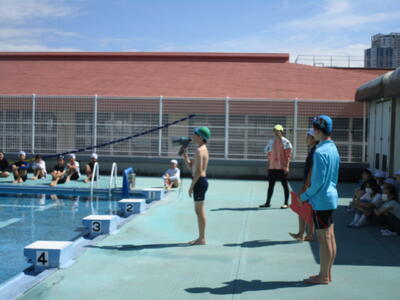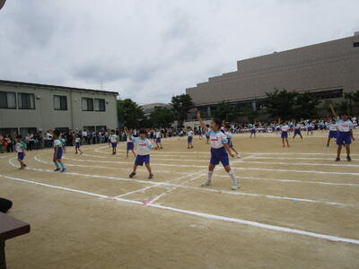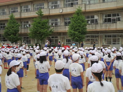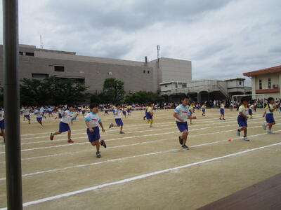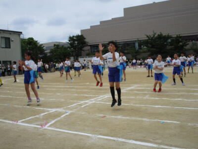 本日は市内陸上大会でした。陸上部に入部した5,6年生の中から代表の選手が出場しました。100M走、走り幅跳びは5,6年生男女、走り高跳びは6年生男女の選手たちが頑張りました。自己新記録を出せた子、いつもの力が発揮できなかった子、それぞれの結果がありましたが、どの子も緊張の中、大変頑張っていました。みんなで仲間を一生懸命に応援している姿が特に素晴らしかったです。