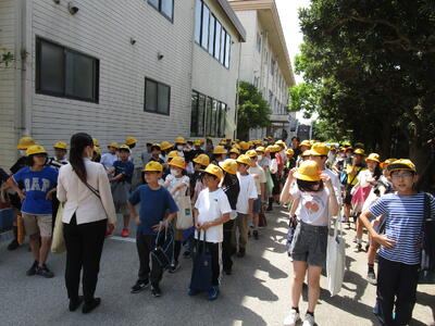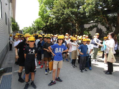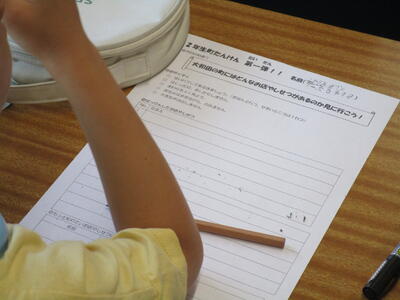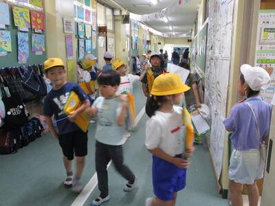 2年生の町探検です。保護者の方のお手伝いでいろいろな場所にインタビューに行きます。出発前に流れを確認したり、質問することを練習したりと準備万端です。天候不良で延期になったため今日となりましたが、探検日和です。元気に出発していきました。保護者のみなさまありがとうございました。
