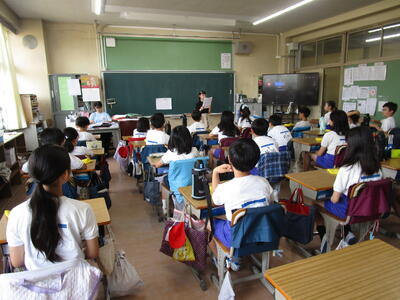 6年生の理科の学習の様子です。水溶液の性質について調べますが、まずは先生の教示を見ました。この後、予想をたて、確かめていきます。