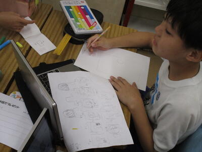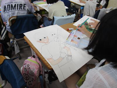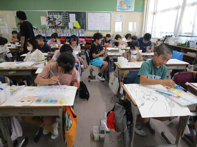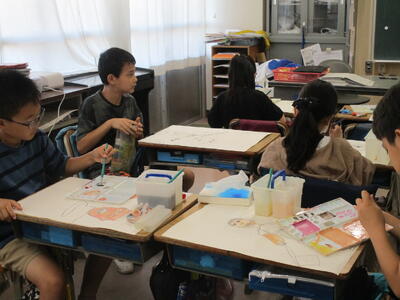 5年生の図画工作科の授業で、ほり進み版画に取り組みます。彫った版画を刷って、また彫り。彫っては刷りを繰り返します。色の重なりや模様を想像しながら進めていきますが、今日は題材をもとに下絵を描く時間でした。ゴールに向かって自分の思い描いた作品になるとよいですね。