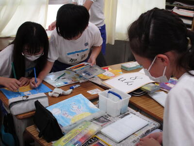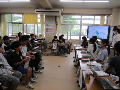 5年生が総合的な学習の時間にSDGsをテーマに取り組んでいます。課題をもって調べたり、インタビューしたり。この後は学んだことや大切なことを広めていく予定です。ポスター作りや、ディスカッションなどそれぞれの計画に沿って進めていました。