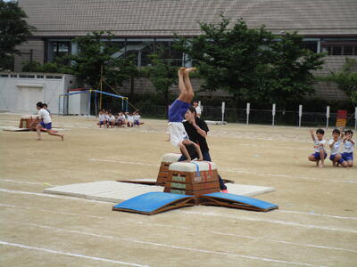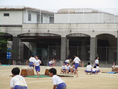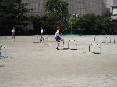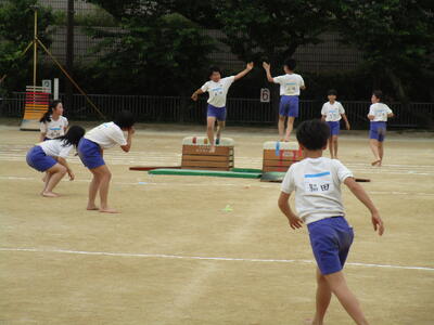 業間休みに4年生の女子、昼休みに男子の走り高跳び大会が行われました。体育委員会の取り組みで、ゴムのバーに2枚紙を下げて、それが2枚とも落ちてしまうとクリアではありません。3回までの試技で飛び越せたら次の高さにチャレンジできます。体育の授業で学習したとはいえ、チャレンジしてきた子は全員、助走や踏切、飛び越し方が上手でした。跳び越そうと生懸命に取り組む姿は素敵でした。応援もたくさん来てくれました。