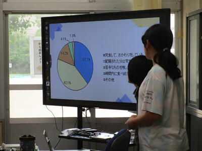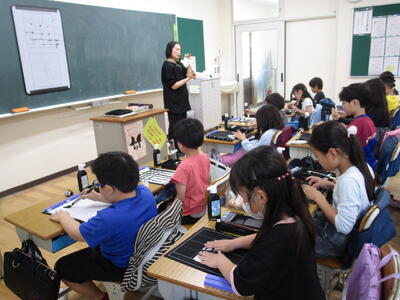 5年生がタブレットを用いて体育の授業のアンケートをやっています。授業について振り返っています。