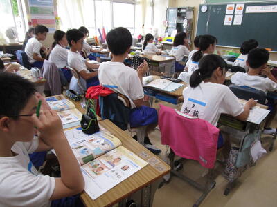 学校支援実践講座に地域の方が来校しました。5年生の各クラスで、からかいやいじめの事例をもとにグループに分かれて話し合いを行いました。地域の方を中心とした話し合いの中で、子どもたちは自分たちの経験や考えをもとに意見をたくさん出していました。もしこんなことが起こったら自分たちならどうするかを考える良い機会になりました。地域の方と触れ合う素晴らしい時間にもなりました。