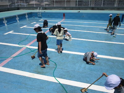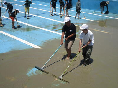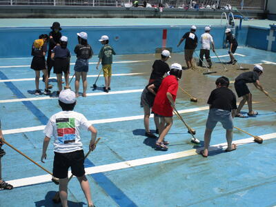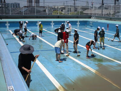 本日、施設開放団体である大和田シラサギ野球部・大和田サッカークラブの保護者(と兄弟姉妹)の皆様にご協力いただき、校庭周囲の側溝清掃を行いました。