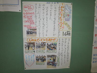 本日は授業参観。たくさんの参観ありがとうございました。学校運営協議会の委員の皆さんも参観されましたが、子どもたちの様子に感心され、よいお話をたくさん聞くことができました。午後は交流イベント。PTAと地域の方のおかげで子どもたちは楽しく充実した時間を過ごすことができました。ありがとうございました。