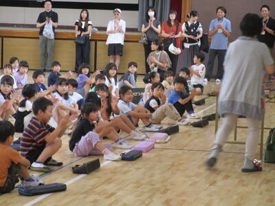 4年生が国語科で落語の発表会をしました。学年で5グループに分かれ、場づくりを行いました。亭号も考え、芸名を書いたものを掲示したり、入場の際の曲、扇子などの小道具、準備万端です。長文を暗記するだけでも大変なのに、身振りや手振り、声の大きさ、速さなど工夫して、見る人を楽しませていました。素晴らしい発表でした。